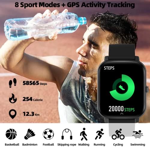🏃【Your Exclusive Sports Life】Accurately record your daily activities like number of steps, distance, calories burned. It helps you track daily activities with real-time stats on smart watch men and get good fitness effects. Supports multiple sports modes, such as swimming, running, cycling, etc. You can intuitively read your exercise data on the watch. Smart watch for iphone compatible with android 4.4 and above, iOS 8.0 and above smartphone.