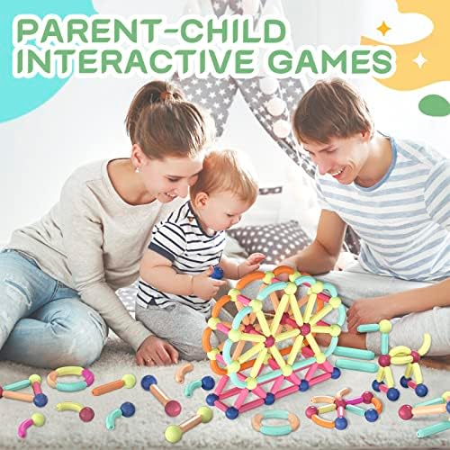 【SAFE BUILDING TOYS】 Using high-quality ABS material, bright in colour. Building blocks surface groove design, easy to grasp and not slippery. Strong magnets. Large size, prevent accidental swallowing, parents can rest assured. Very fit toys for toddlers and a sensory toys for toddlers 3-4.