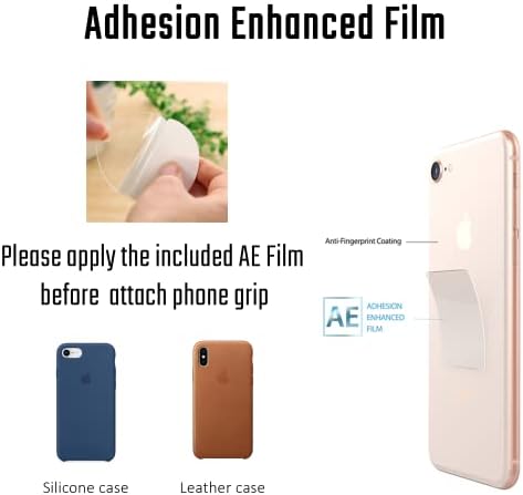 Note: Adhesion Enhanced Film is included. If you are using Liquid silicone, Leather cases or Anti-Fingerprinted Cellphones, please apply the assistive film before attaching the phone grip
