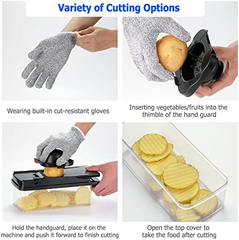 【8 INTERCHANGEABLE BLADES】Mandolin Vegetable Chopper Slicer contains 8 different sizes of fruit chopper blades interchangeable blades for thick/thin slicing, dicing or dicing, shredding/shredding, thick/thin, grinding and chopping. The high quality stainless steel blades make it easy to chop and make salads, salsa and all kinds of cold mixes, etc.