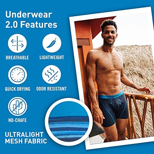 From trekking across Thailand to summiting Mount Everest, to traversing the toughest stretches of Baja, we’ve spent over 20 years perfecting the art of adventure. And for every epic adventure, you need an even more epic pair of underwear (or 2). That’s where the Men’s Give-N-Go 2.0 Sport Mesh 6inch Boxer Brief comes in. Now more breathable, moisture-wicking, and quick-drying than ever, our latest iteration of the perfect pair is designed to keep you moving—comfortably. These men’s boxer briefs feature durable fabric for long-lasting use, 4-way stretch for total range of motion, and flatlock seams for reduced chafing, so you can explore more and worry less about your underwear. The wide waistband won’t stretch out or lose shape even during long days of wear, plus the improved anti-odor treatment stays fresher, longer. Offering a snug fit and low rise, the Give-N-Go Sport Mesh 2.0 Collection is ideal for high-energy activities like powering through an intense gym session, cycling steep hills, or backpacking through a far-off country.Main Fabric: 90% Nylon(66)/10% Elastane.