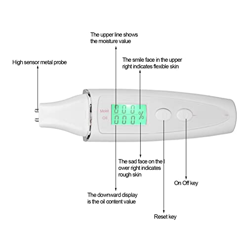Smart Display: Know your skin condition with the smart screen display, the upper display shows the moisture value, the lower display shows the oil value, the smile face in the upper right corner represents soft skin, and the sad face in the lower right corner represents rough skin.