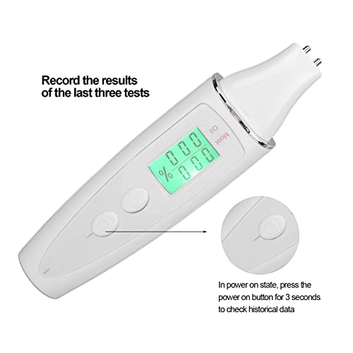Smart Reminder: When the green light of the tester is on, it means please continue to hold. When the red light is on, it means that the skin is dry and needs to be replenished in time. When the yellow light is on, it means that the skin moisture and oil are saturated, please keep this state.