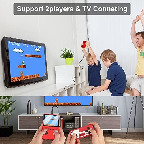 🎮🎁🍭 Play with friends and family: The game console comes with a game handle that allows two players to play together. You can also connect it to your TV via AV output and enjoy a bigger screen and better sound.