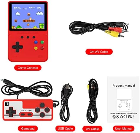 🎮🎁🍭 What you’ll get: The package includes a portable game console, AV cable, DC cable, game handle, 1200mAh battery, and user manual. Get your hands on this extraordinary handheld game console today and experience gaming like never before!
