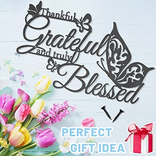 【Package Includes】Our package contains 1pc “Thankful Grateful and Truly Blessed ” black metal word logo decoration,With 3 screws, 3 expand plug ,4 double-sided tape auxiliary materials.Home word wall art is a good decoration for your home