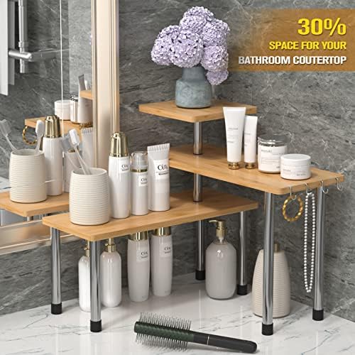 MULTIFUNCTIONAL KITCHEN ORGANIZER: The 3 tier small corner shelves with nature bamboo color be can perfect as spice rack, coffee station organizer, over sink shelf, bathroom organizer, plant stand which is a real hero that makes your home well organized.