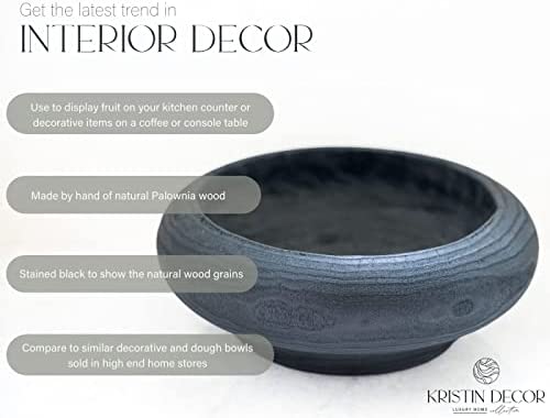 HANDMADE & ALL NATURAL – Individually hand crafted, these wooden dough bowls are made of 100% natural Paulownia wood and hand stained with a black finish for your modern decor and neutral home decor.