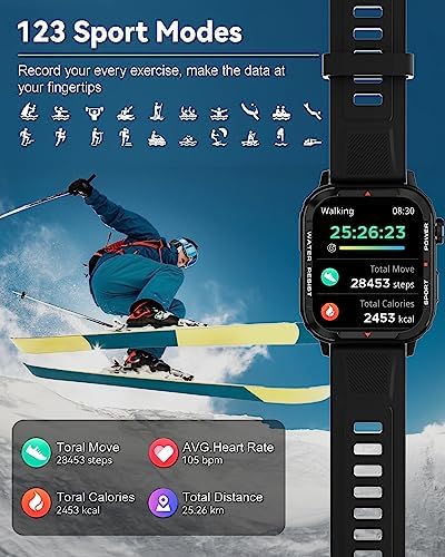 🤾♀️【Encourage Active Lifestyles】: The fitness watch built-in 123 sports modes (walking, running, cycling, basketball, football, yoga, dance, etc. ), covers most sports enthusiasts. Beside, activity trackers watch helps to track your daily activities in real time, including steps, distance, calories, movement time distribution. when you open gps sport mode on your phone that delivers precise location tracking to help accurately measure your speed and distance, allowing us to push ourselves to remain active and fit.