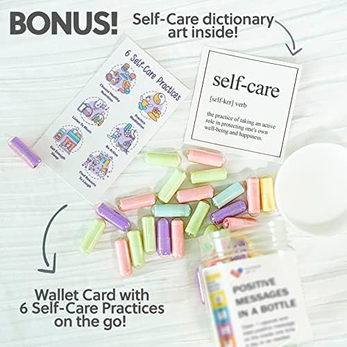 MESSAGES IN CAPSULES – Unlike other affirmation cards for women, our self care kit messages come inside a clear capsule in a bottle. Just open one capsule and read an inspirational message on the inside daily or as needed for encouragement and motivation.