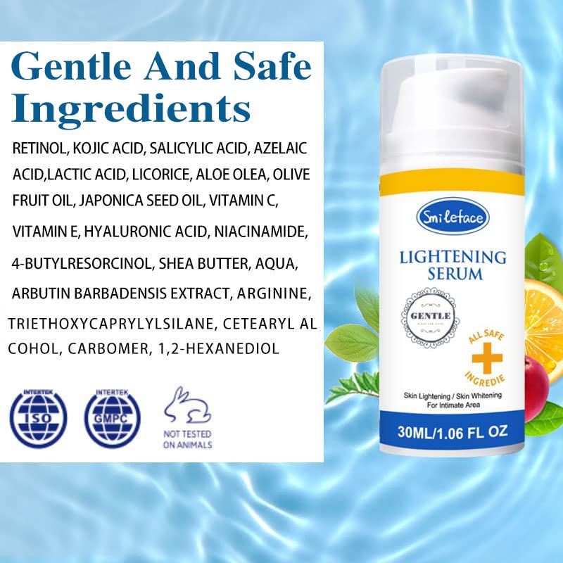 【Friendly】The skin whitening serum is vegan, cruelty-free, and gluten-free. Never tested on animals.