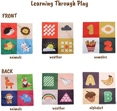 【Learning Through Play】The infant toys let your babies get started with early learning, to promote STEM education. Our sensory toys baby use high contrast design, suitable size for baby hand, to build their hand-eye coordination. These montessori toys with colorful prints featuring the alphabet, numbers, animals, bugs, sea creatures, fruits and more, provide the perfect opportunity for toddlers learning.