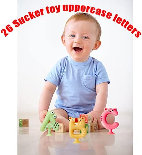 Unique Design: 26 Sucker toy uppercase letters with vivid animals on each representing the letter, like A for alligator, is a very cute set of alphabet learning toys. It arouses children’s interest greatly, making kids learn the alphabet as well as animals.