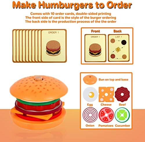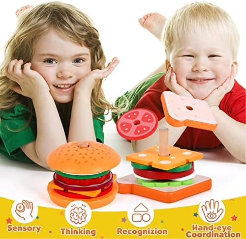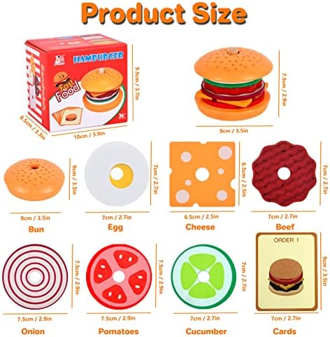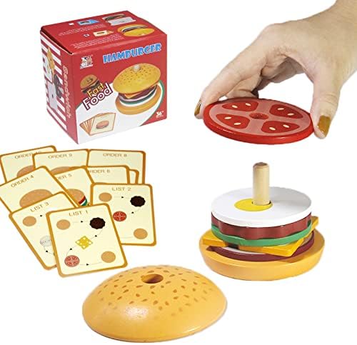 【SHAPE SORTER & COLOR MATCHING】Pajojoqa burger stacking toys can help children recognize food in life, We encourage our kids to complete each of orders(flash cards) by themself, stimulate children’s imagination through role play. Also, our game helps kids identify colors and shapes. Great hands-on learning tool for classroom, home or child development. It can stimulates children’s attention and enhances their hand-eye coordination, logical thinking, hands-on ability and fine motor skills.